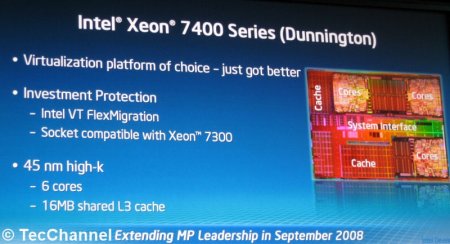 С форума Intel для разработчиков, проходящего в эти дни в Сан-Франциско, поступила информация о том, что выхода серверных 6-ядерных процессоров Dunnington ждать осталось совсем недолго. Первым из них станет Xeon X7460, который будет доступен в серверах ряда производителей, начиная с сентября. Напомним, такие CPU будут строиться на базе Penryn, а не Nehalem.