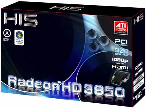HIS Radeon HD 3850 HDMI 256MB GDDR3 включает 256 Мб GDDR3-памяти с шиной доступа 256 бит. Частотная формула представлена в виде 668/1656 МГц для ядра и памяти соответственно, что даже немного меньше рекомендуемых 670/1660 МГц. Несмотря на заманчивое название видеокарты и надпись на коробке, «врожденная» поддержка HDMI отсутствует и может быть реализована только посредством специального переходника DVI-HDMI. Отметим, что некоторые производители, например, Palit Microsystems, реализовали порт HDMI в своих решениях. В видеокарте HIS есть два порта DVI и HDTV-выход