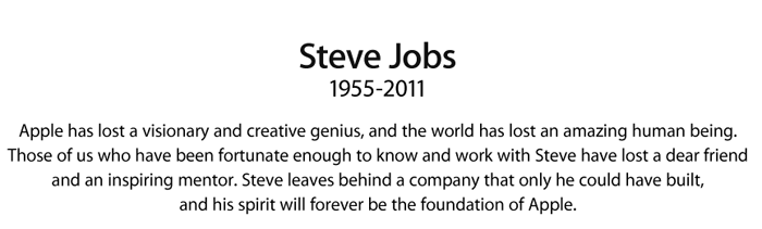 В США, возрасте 56 лет умер Стив Джобс (Steve Jobs). Данный факт подтвердила компания Apple, на своем официальном сайте разместившая страницу с некрологом.