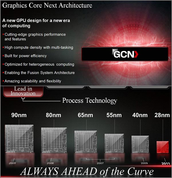 Прошло около года после запуска ускорителей AMD Radeon HD 6000, и компания представила новую 28-нм серию карт, которые основаны на новой архитектуре «Graphics Core Next» и приносят производительность подчас уровня 2-чиповых флагманских карт предыдущего поколения. Ускоритель Radeon HD 7970 (если не учитывать весьма высокой стоимости в $550) буквально раздавил флагманскую карту NVIDIA GeForce GTX 580 предыдущего поколения.
