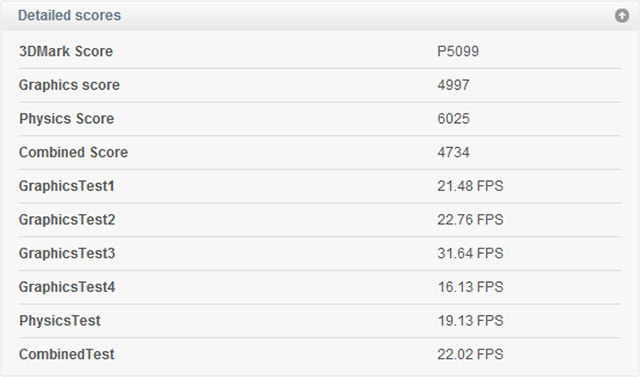 После тестирования пакет выдаёт пользователю общий балл, а также производительность по отдельным тестам. В 3DMark 11 роль старой графы CPU Score теперь выполняет Physics Score (5-й тест), на месте осталась GPU Score (первые 5 тестов) и появилась новая Combined Score (6-й тест). Также для каждого из тестов можно увидеть среднее количество кадров в секунду.
