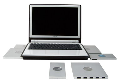 В то же время, до решения всех «беспроводных» проблем никто не мешает использовать хорошо отработанные проводные технологии, а унификация размеров и способа подключения функциональных блоков сулит немало новых возможностей и в этом случае. Например – изготовленный по этому принципу блок накопителя на жестких дисках можно будет с легкостью применять и в настольной системе, и в ноутбуке, и в совместимых медиаплеерах.