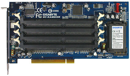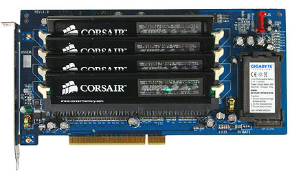 Устройство i-RAM является PCI-картой с четырьмя разъёмами под самые обычные DIMM модули оперативной памяти DDR. Всего можно установить до 8 Гб; передача данных осуществляется по интерфейсу SATA на скорости 150 Мб/с. И, всё бы хорошо, скажет потенциальный покупатель, но неужели каждый раз придётся записывать гигабайты в i-RAM заново, теряя драгоценное время? Ведь, память DDR энергозависимая и, при отключении ПК, ОЗУ тут же очищается. Для решения проблемы специалисты Gigabyte оснастили устройство аккумулятором, благодаря чему данные могут храниться до 12 часов.