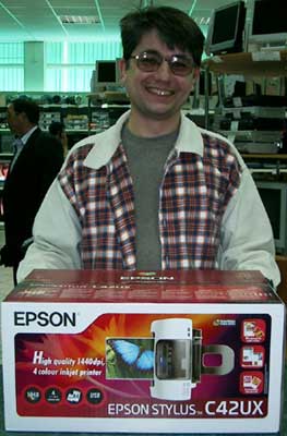 Итак, лед тронулся, господа! Сегодня второй (Ильдус Тупиев) и пятый (Кузнецов Антон) победители получили в подарок по принтеру Epson C42 UX.
